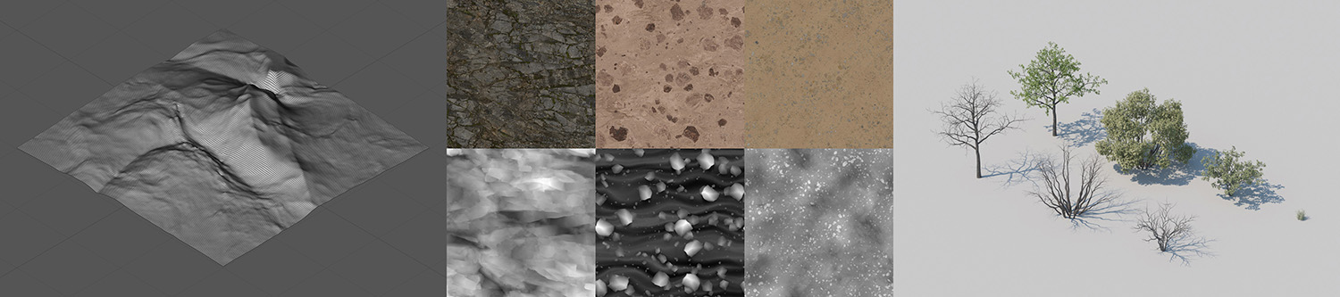 www.textures.com. (Cliff Rock 3, Sandy Rock Soil and Sandy Soil 2) But of course, you can use others too.