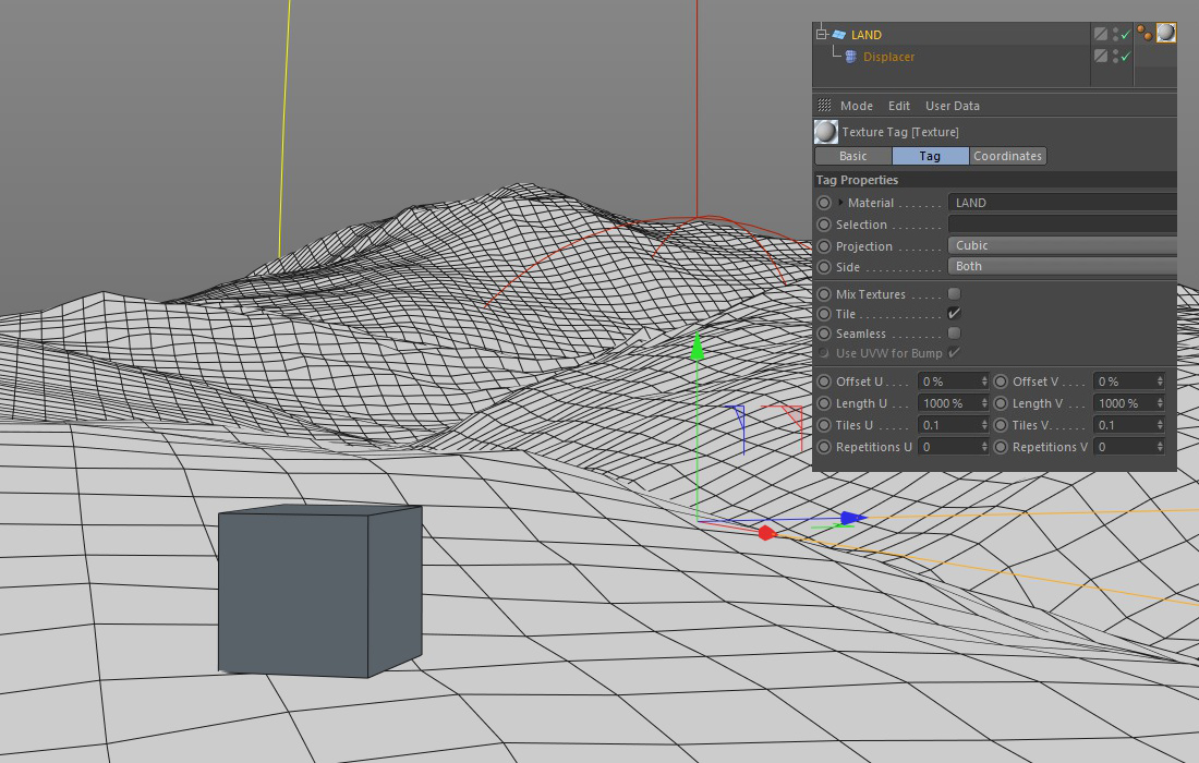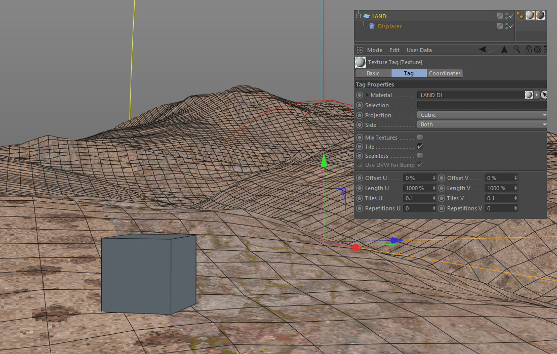 One thing is still missing. Create a Displacement Material to add final details. Add it with the same exact Projection and Tiles to the model. Make sure that the Displacement Material is placed before the other material is, so that it doesn't overwrite it.